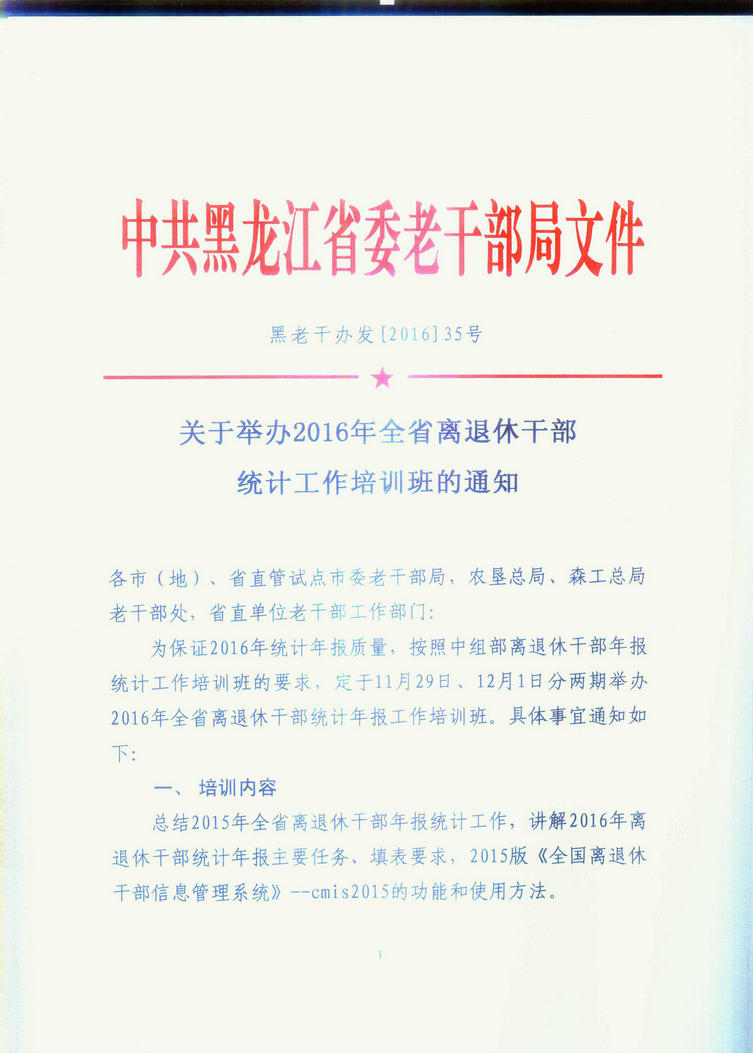 关于举办2016年全省离退休干部统计工作培训班的通知